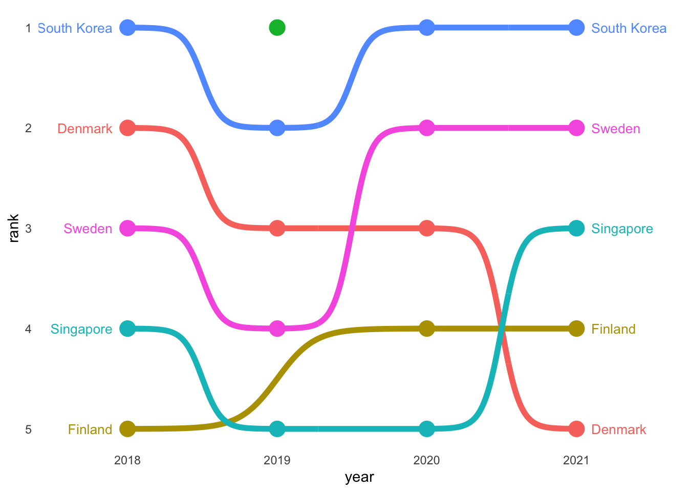 levels(top5people$country)[1] "Denmark" "Finland" "Liechtenstein" "Singapore"