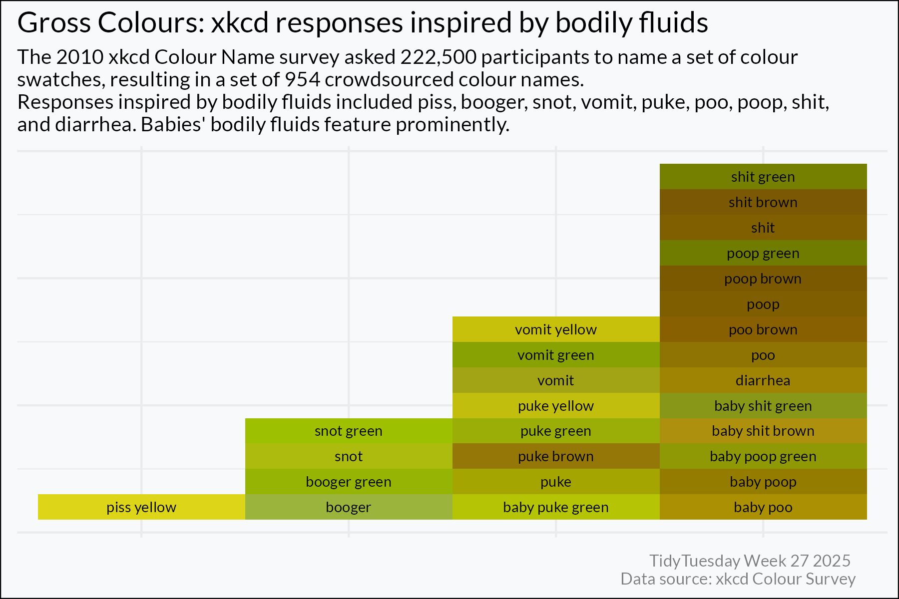 I document my TidyTuesday process here, creating useful resources for the community about how my plot came about. Recently I have also curated datasets for Tidy Tuesday (see Week 20 re Sydney Beaches, Week 25 re global measles cases, Week 34 re Billboard Number Ones, and Week 36 re the Henley Passport Index).